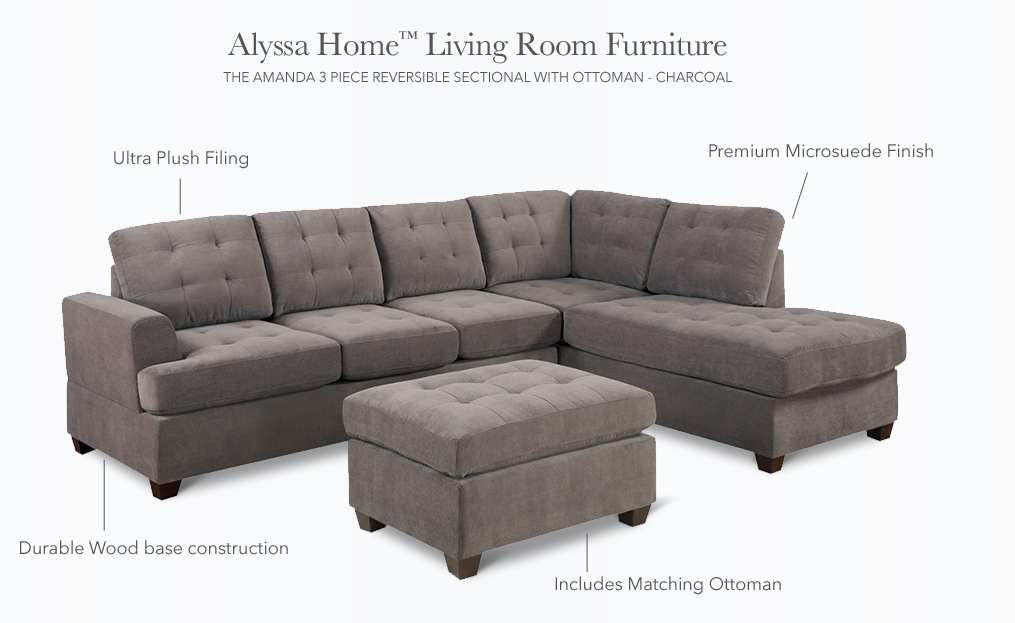 3 pc Modern Microfiber Sectional Sofa Chaise ...